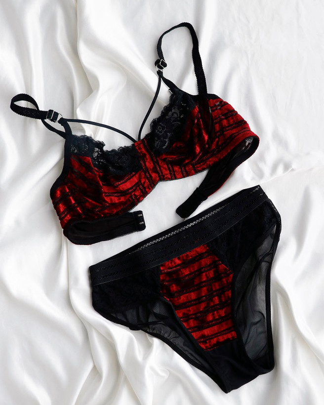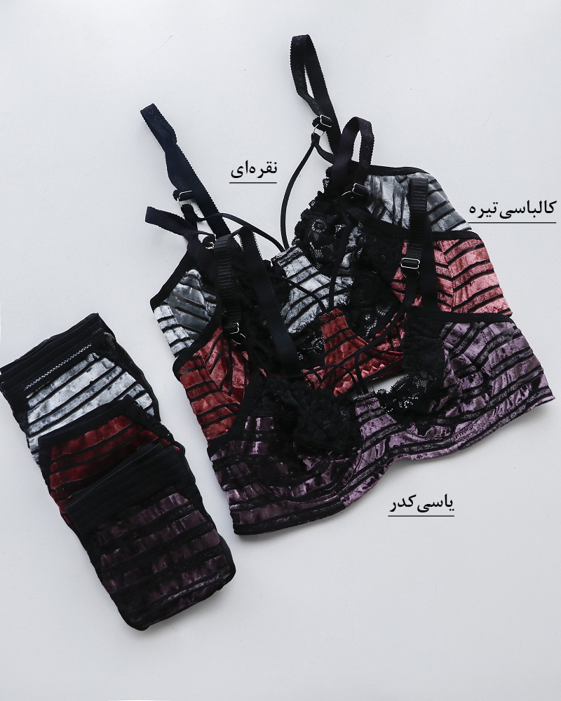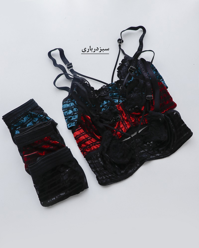 ست سوتین وشورت هارنس دار مخمل مدل اتوبانی