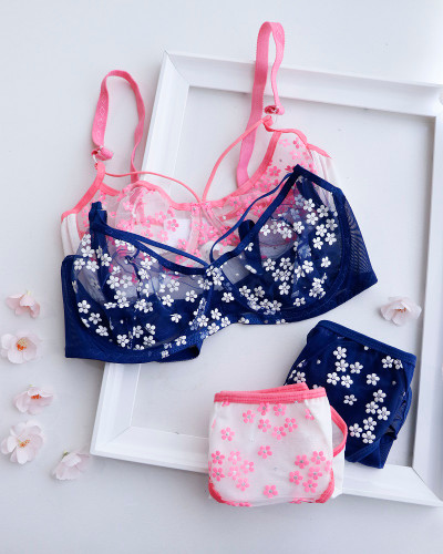 ست سوتین وشورت فنردار زنانه تورگازمدل گل برجسته برند MR